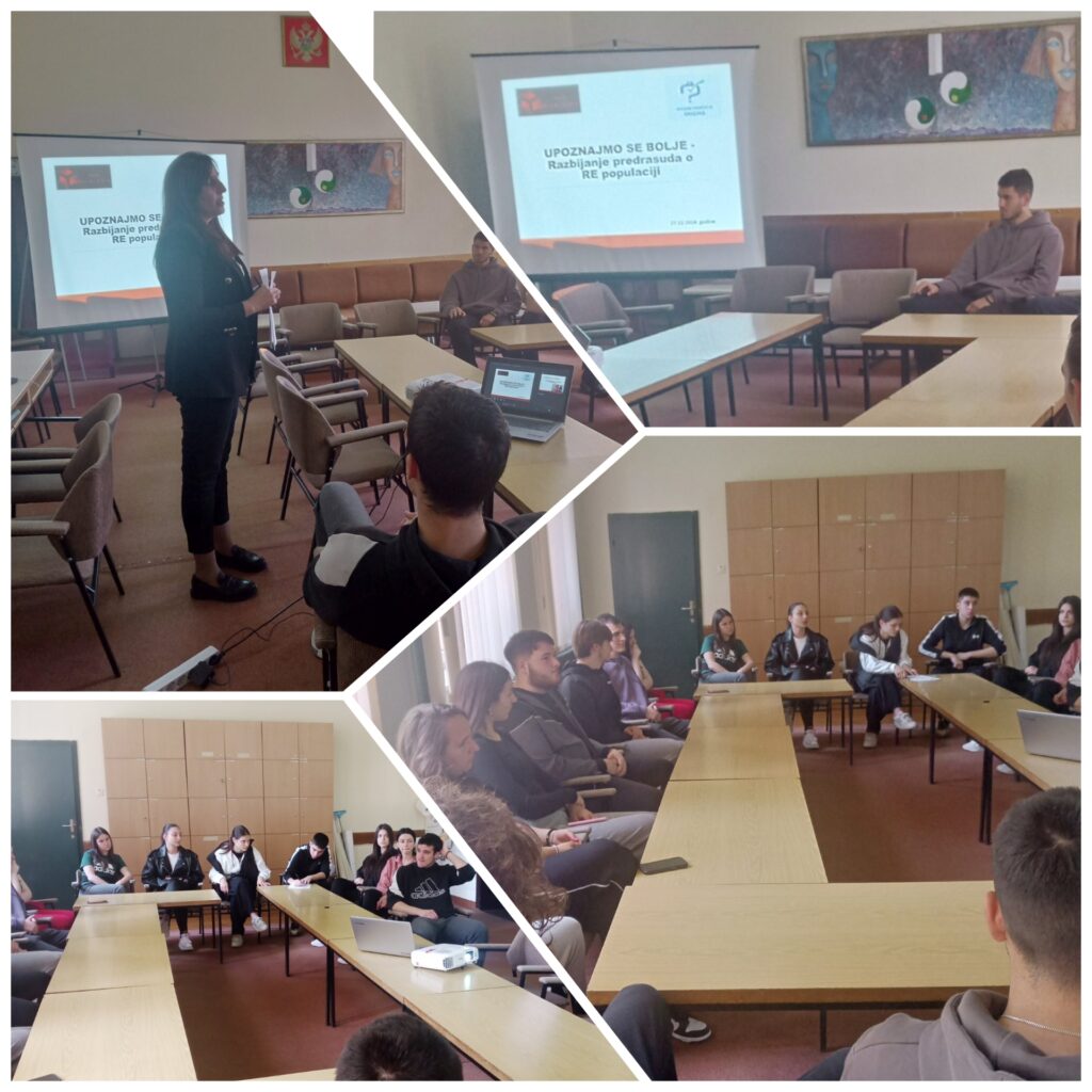 U uvodnom dijelu razgovaralo se o tome šta su predrasude i stereotipi, te kako oni utiču na svakodnevni život pojedinca. Učenici su dijelili lična iskustva i razmišljanja o nepravdi i isključenosti. Kroz kratku prezentaciju, prisutni su se upoznali sa osnovnim informacijama o RE zajednici – njihovom porijeklu, tradiciji i specifičnim izazovima poput otežanog pristupa obrazovanju, zapošljavanju i zdravstvenim uslugama. Diskusija koja je uslijedila otvorila je prostor za razmjenu mišljenja i predloga o tome kako svi zajedno možemo doprinijeti boljoj inkluziji RE učenika u školski i društveni život. Istaknuto je da je razumijevanje i poštovanje različitosti ključ za izgradnju pravednijeg i humanijeg društva.