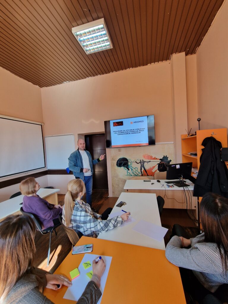 U ponedjeljak, 15. aprila 2024. godine, u organizaciji NVO “RUBIKON”, izvršena je prezentacija programa obrazovanja odraslih za sticanje stručnih kvalifikacija i ključnih kompetencija., koje realizuje Edukativni centar “ARHIMED”. Cilj prezentacije je bio da se zainteresovana lica informišu o programima obrazovanja odraslih koji se realizuju u cilju cjeloživotnog učenja jer je institucionalno i vaninstitucionalno obrazovanje jedan od programskih ciljeva NVO “RUBIKON”. Prisutnima se obratio Jovan Šekularac, koji je stručni saradnik u Edukativnom centru “ARHIMED” i angažovan je kao predavač i koordinator nekoliko programa obrazovanja odraslih.